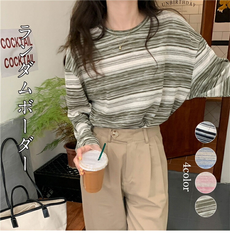 ボーダー柄 ロンT 長袖 Tシャツ レ レディースファッション 人気 ブラック グリーン ピンク ブルー XL(Mサイズ相当) 2XL(Lサイズ相当)