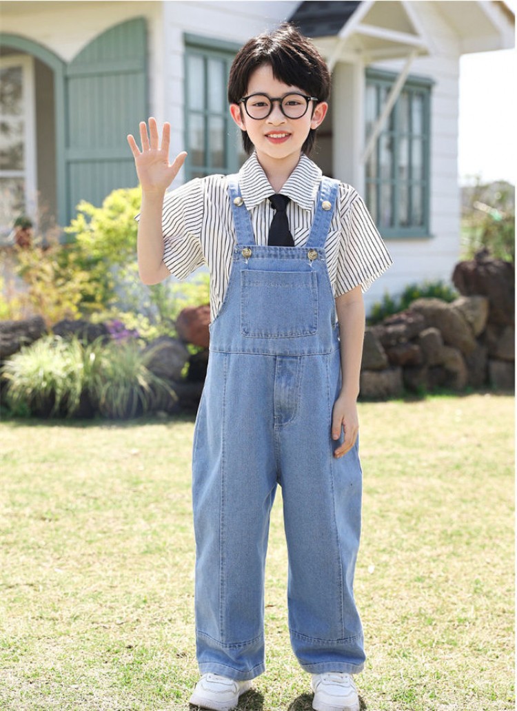 100cm-180cm 単品 ダンス衣 キッズ ベビー マタニティ 特集 サロペット-ダークブルー サロペット-ライトブルー シャツ-ブルー シャツ-ホワイト 100 110 120 130 140 150 160 170 180