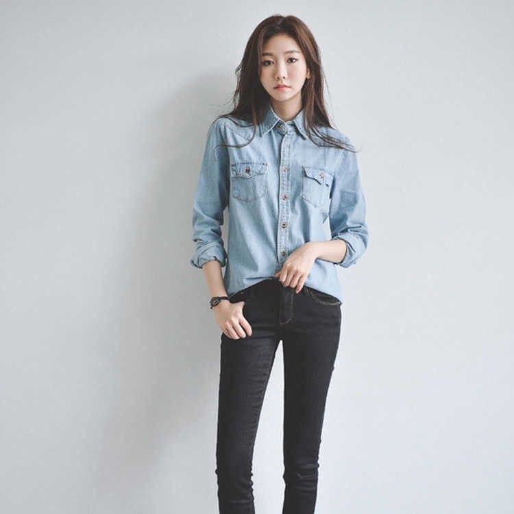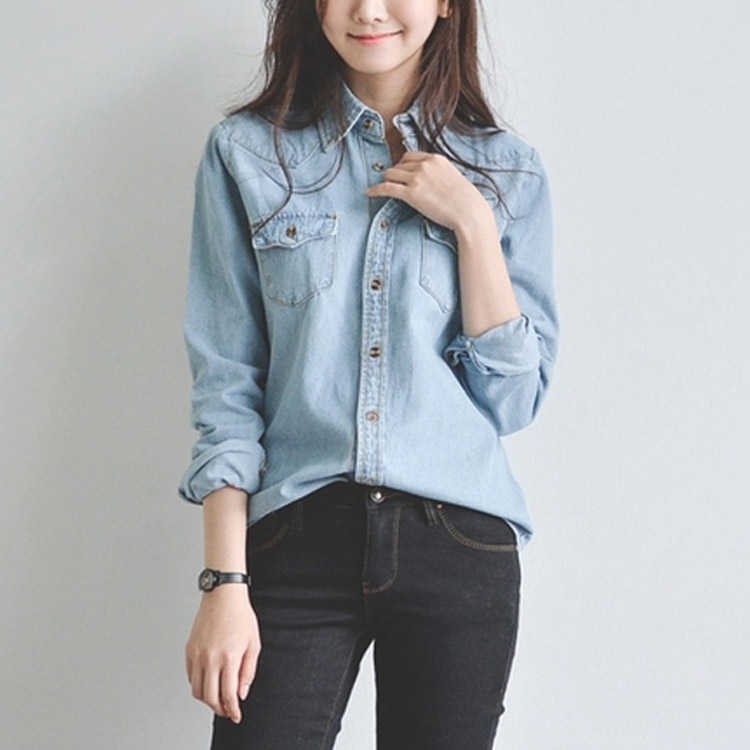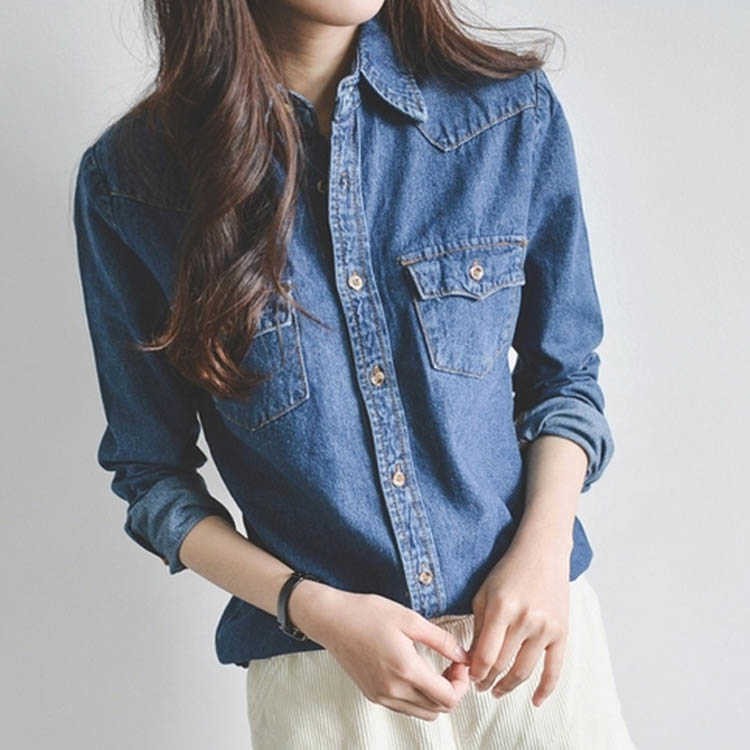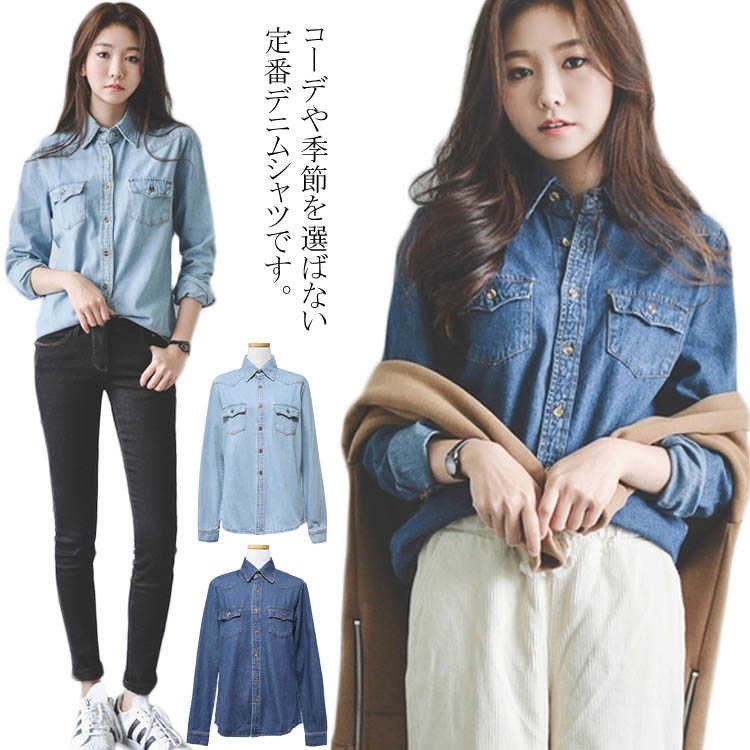 レトロ デニム 長袖 シャツ ジャケッ レディースファッション 続々登場 ライトブルー ダークブルー S M L XL