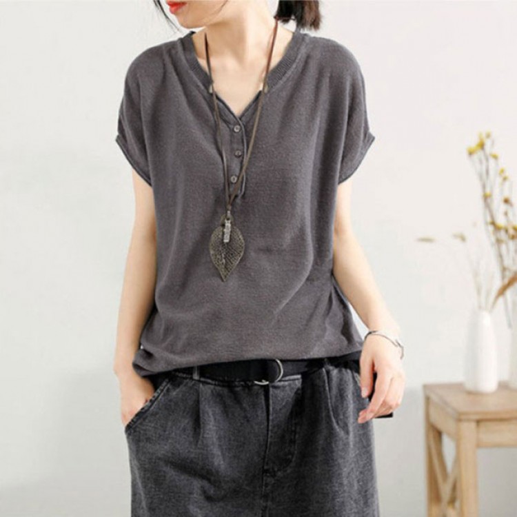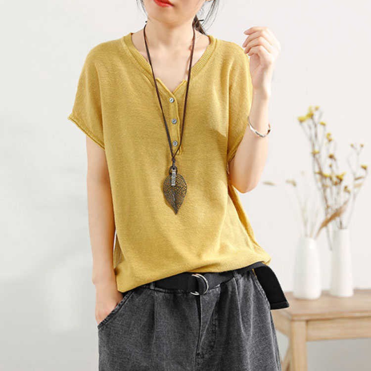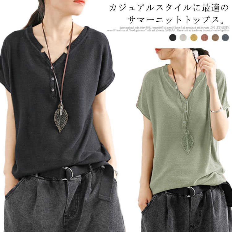 サマーニット 半袖 Vネック レディー トップス Tシャツ カットソー 特集 1 2 3 4 5 6 S M L XL 2XL 3XL