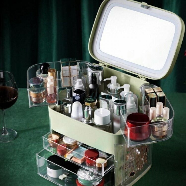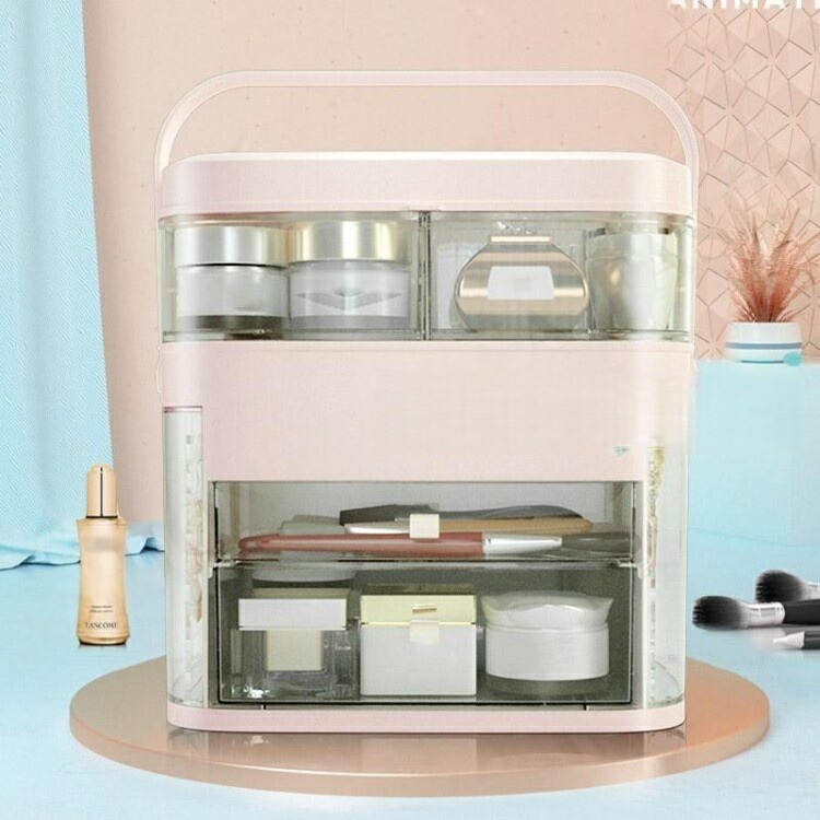 メイクボックス 鏡付き 大容量 持ち運 ホワイト ピンク