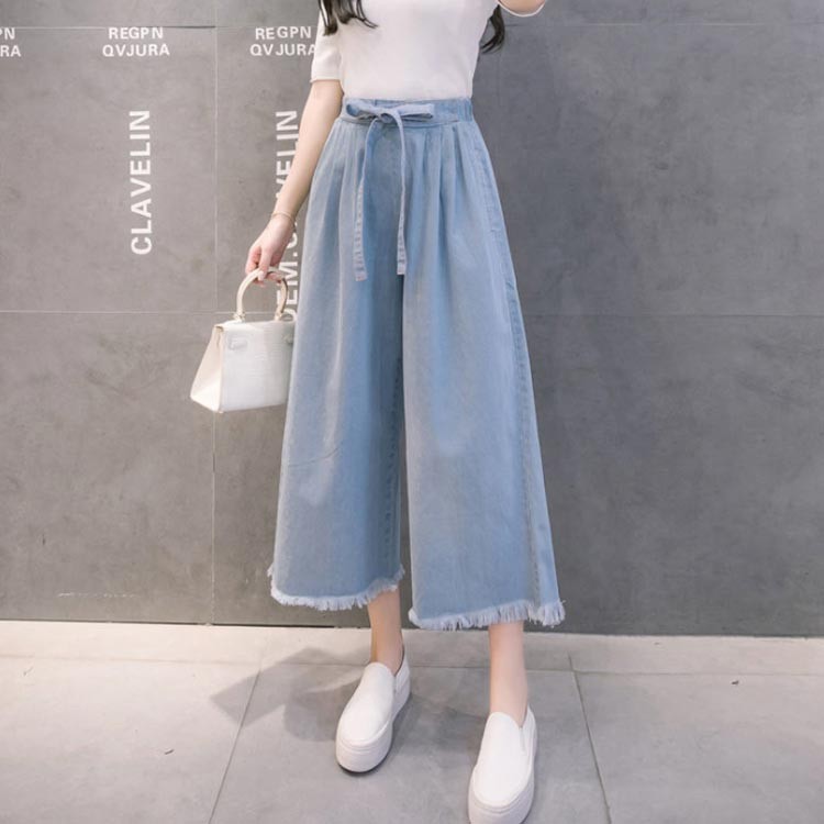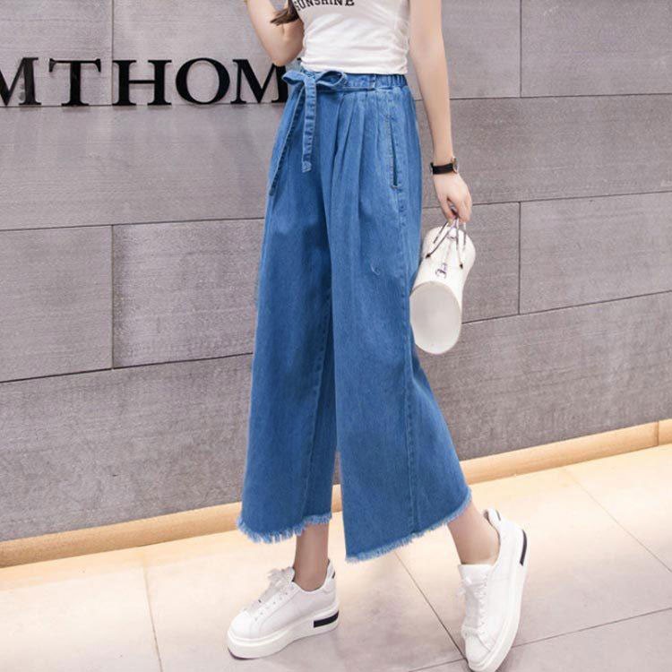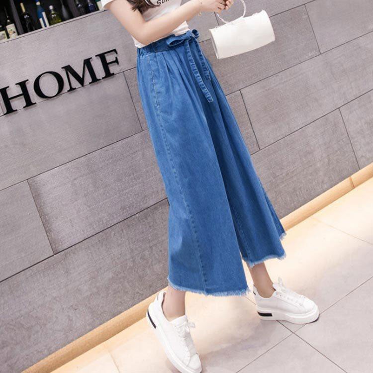 デニムワイドパンツ レディース 九分丈 ライトブルー ダークブルー S M L XL