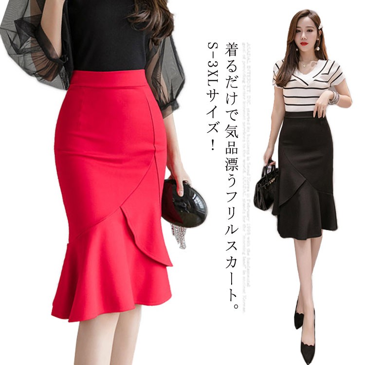 S~3XLサイズ マーメイドシルエット レディースファッション 通販 ブラック レッド S M L XL 2XL 3XL