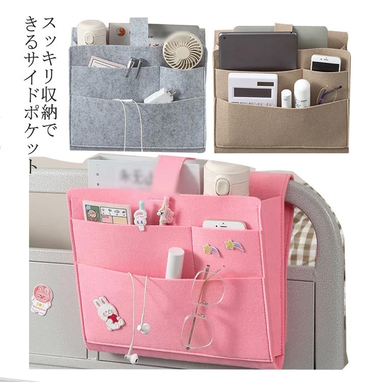 ベッドサイド ポケット 収納ポケット グレー コーヒー ピンク