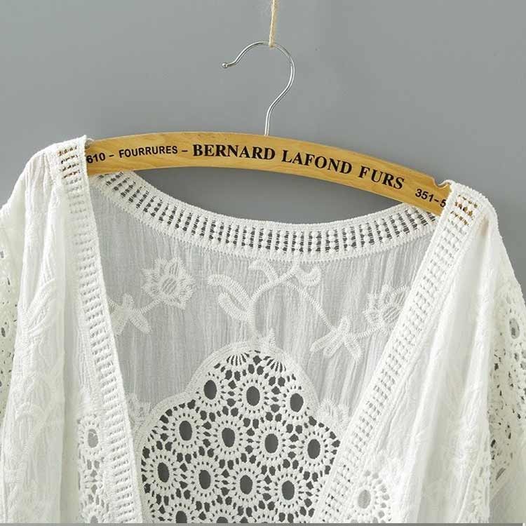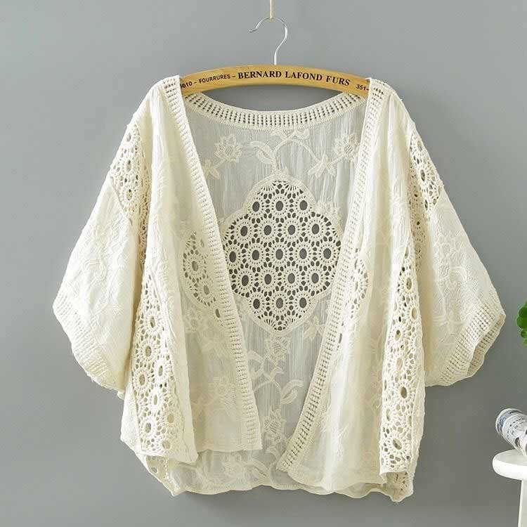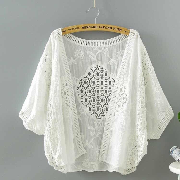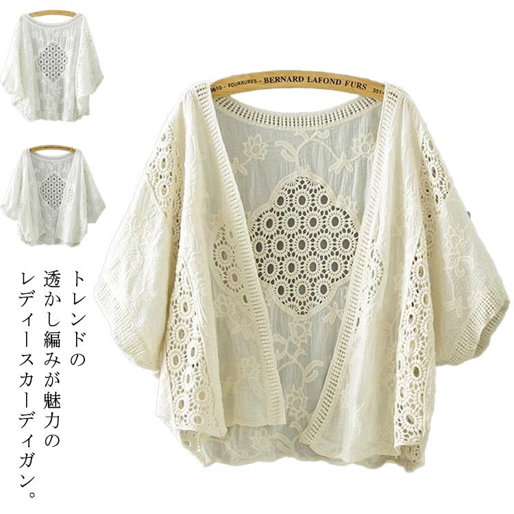 カーディガン レディース 刺繍 透かし ホワイト ベージュ