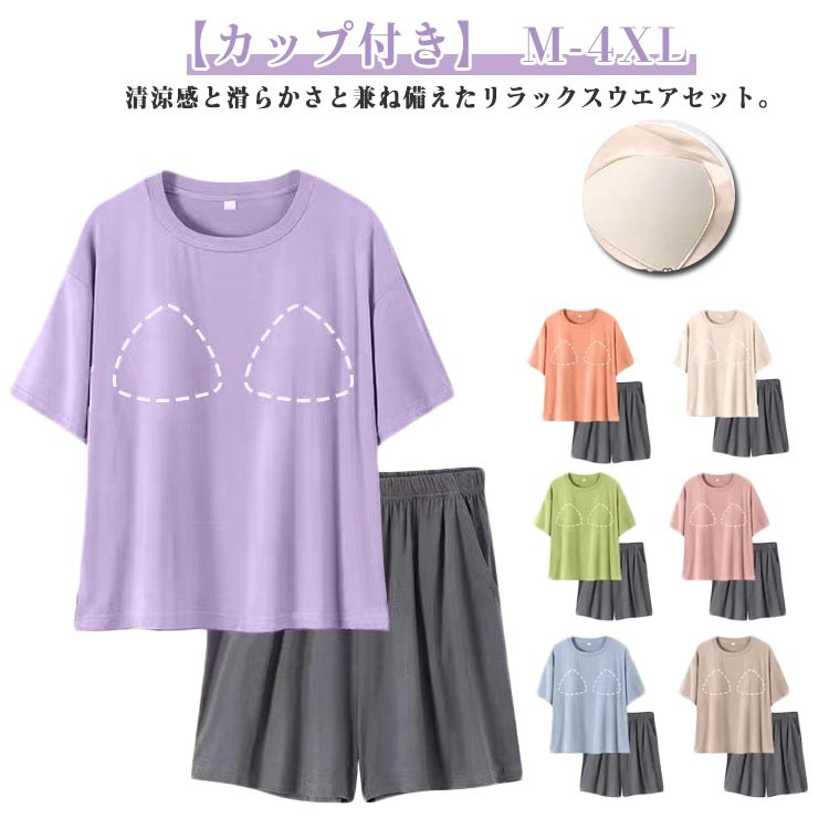 冷感 ルームウェア レディース 夏 夏 パープル アイボリー グリーン ピンク オレンジ ブルー ベージュ M L XL 2XL 3XL 4XL