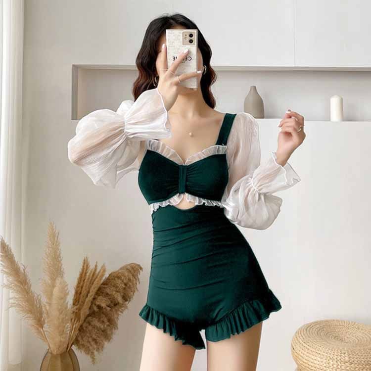 水着 レディース 体型カバー 長袖 U レディースファッション 新作 ブラックA ブラックB グリーン S M L XL