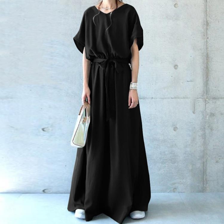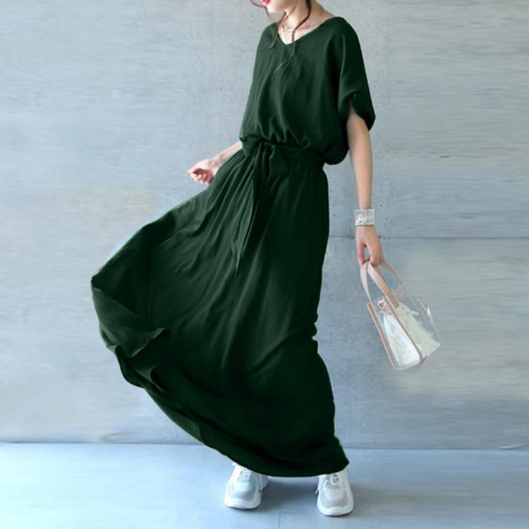 マキシワンピース Vネック マキシ丈ワ グリーン イエロー グレー ブラック S M L XL 2XL 3XL 4XL