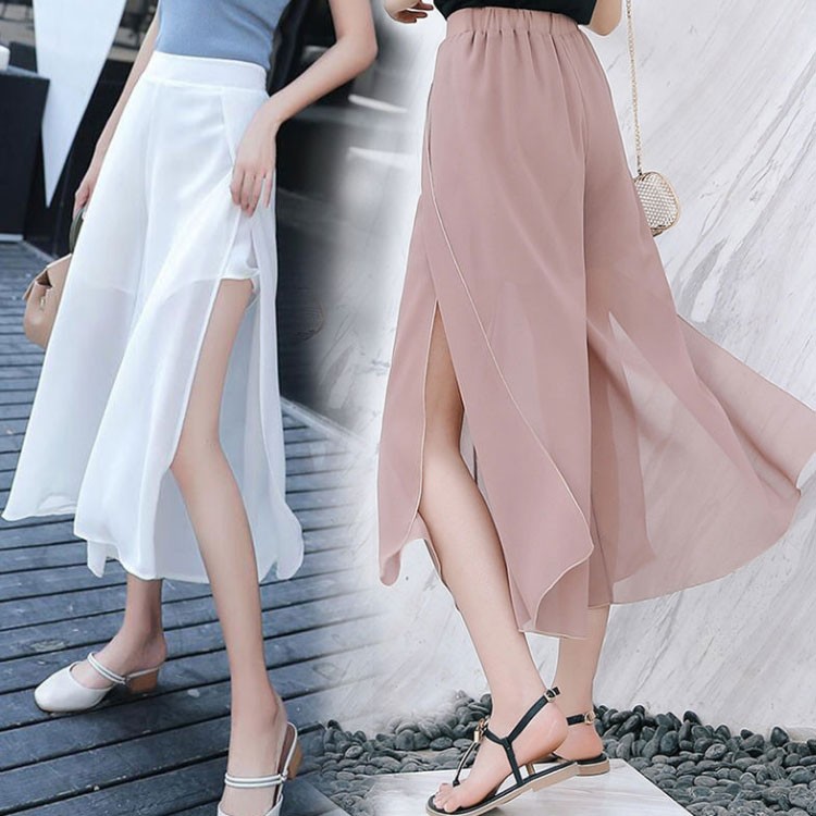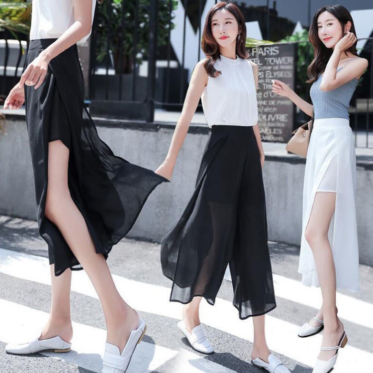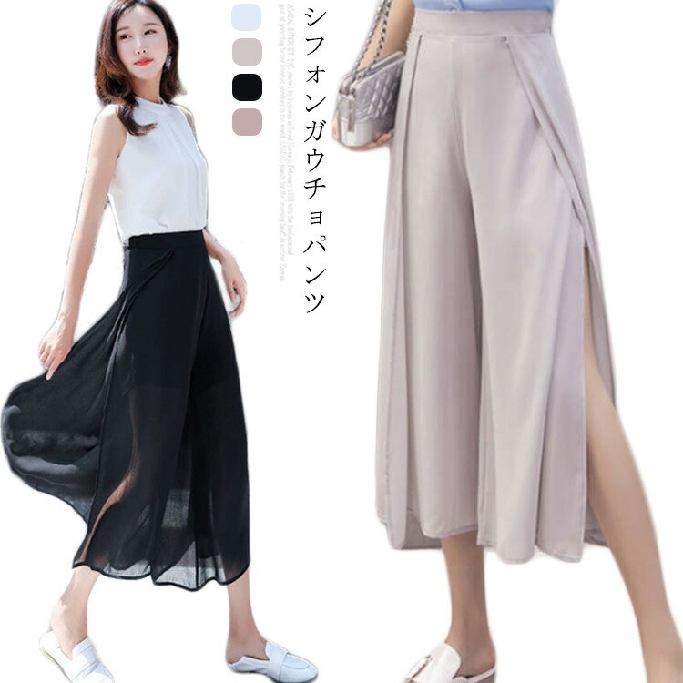 シフォン ガウチョパンツ ワイドパンツ ホワイト ライトグレー ブラック ピンク S M L XL 2XL 3XL