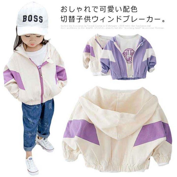 子供服 ウインドブレーカー ジャンパー キッズ コート ジャケット 続々登場 パープル ホワイト 80 90 100 110 120 130