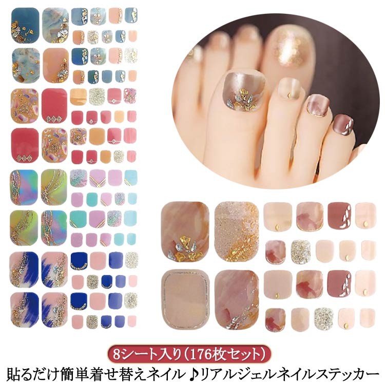 花 セルフネイル ネイル フットタイプ ネイルシール 北欧 ジェルネイルシール ネイルステッカー 8シート入り 176枚セット ジェ ネイルデザインシール 貼るだけ ジェルネイル