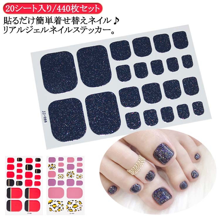フットタイプ 貼るだけ リアルジェルネイルステッカー ネイル ネイルステッカー 20シート入り 440枚セット 北欧 ジェルネイル ネイルデザイ セルフネイル 花 ネイルシール