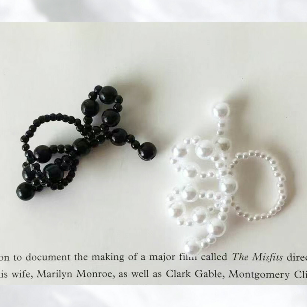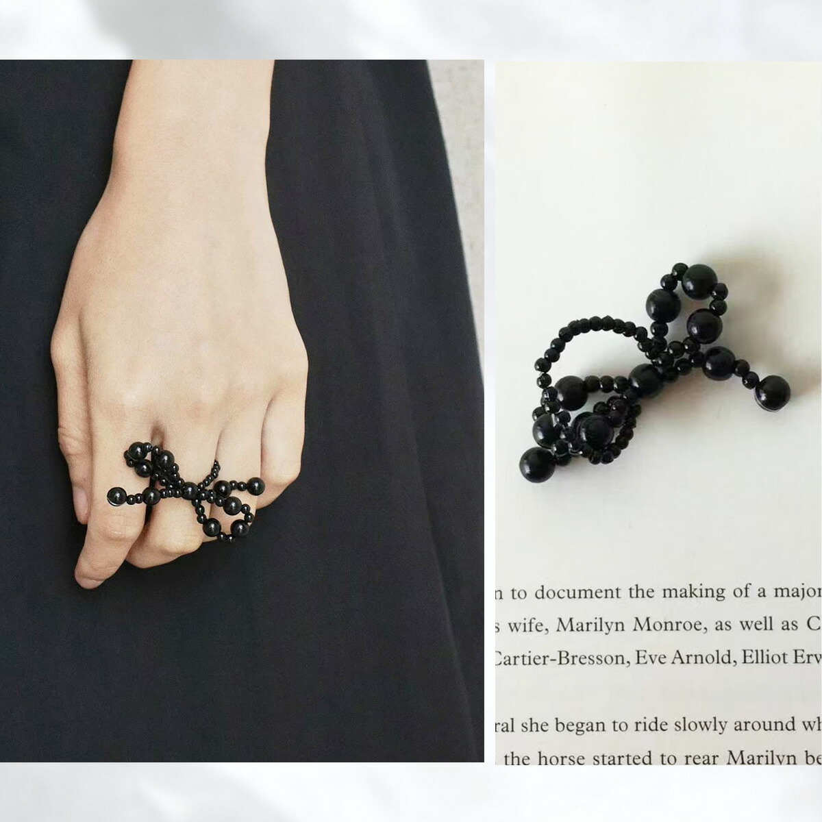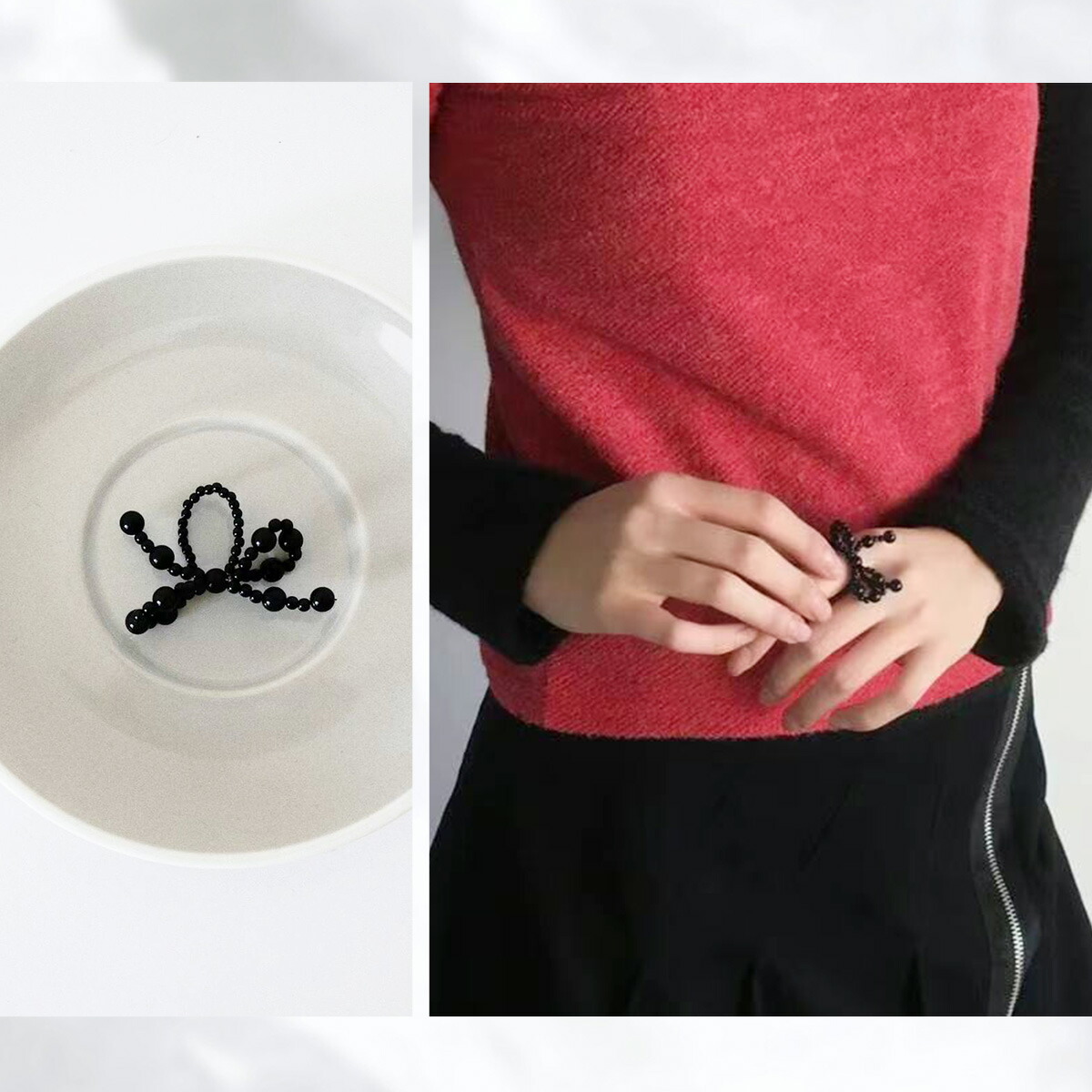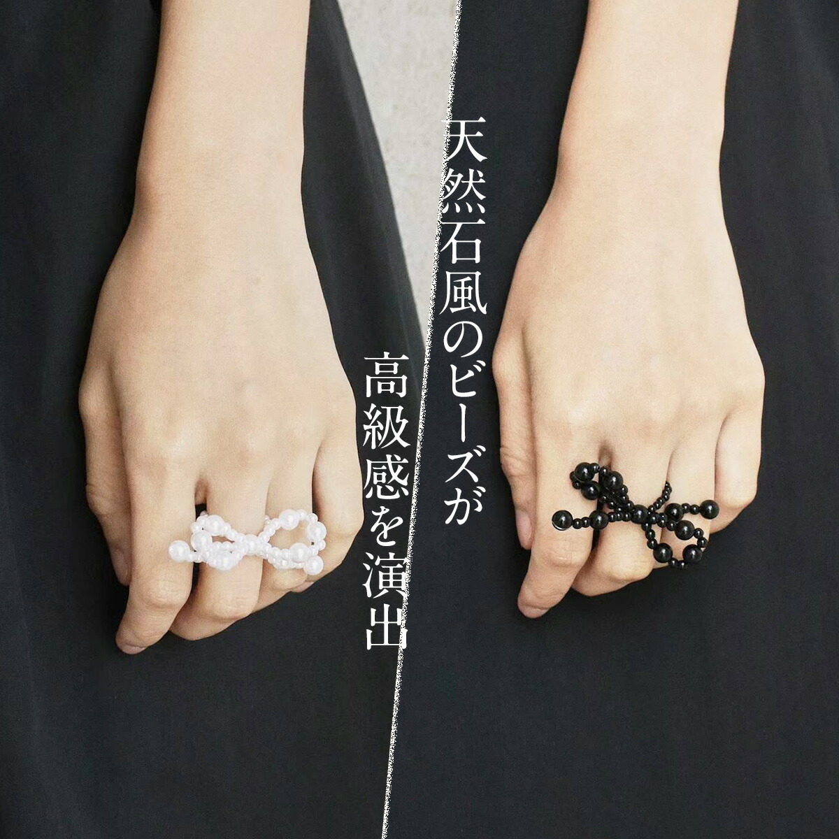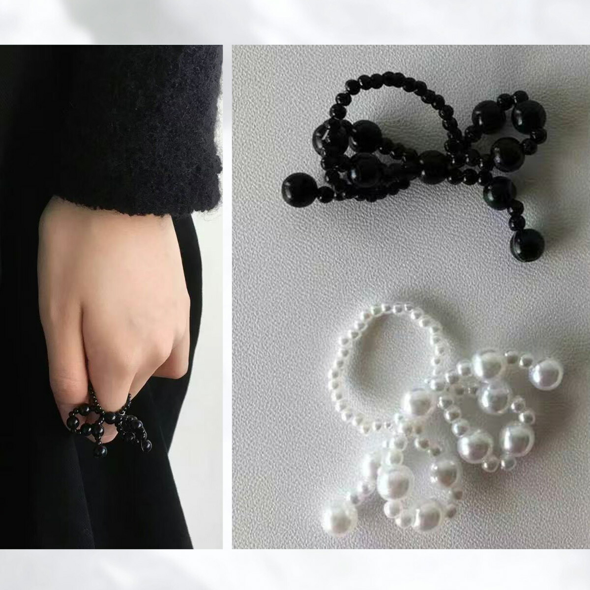 ビーズ リボン リング 指輪 レディー ジュエリー アクセサリー 早い者勝ち ホワイト ブラック