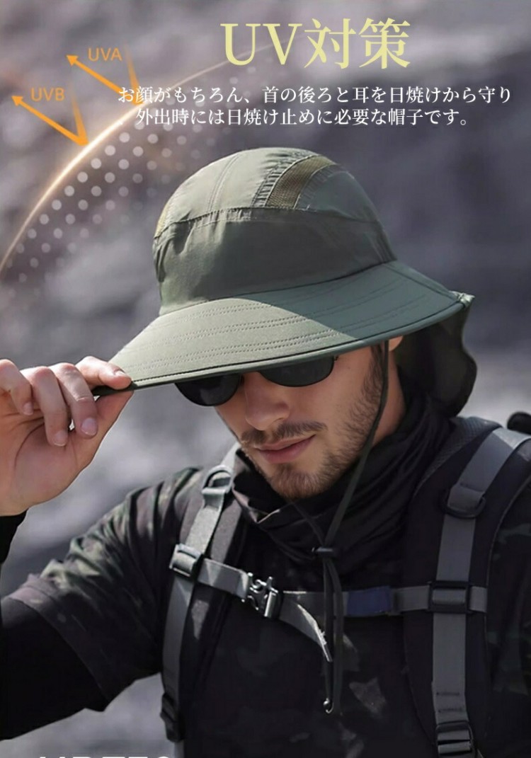 日よけ帽子 サファリハット UVカット 日よけ 紫外線対策 レディース メンズ 農作業 つば広 メッシュ フェイスカバー付き 首ガード 通気 日焼け防止 アドベンチャーハット アウトドア