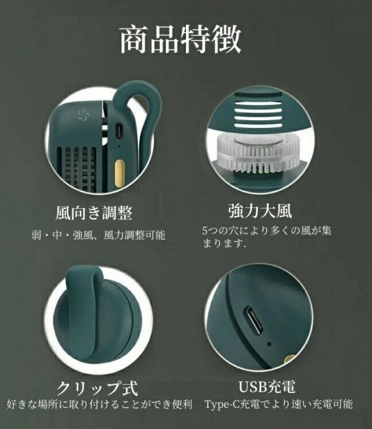 扇風機クリップ USBクリップ式扇風機 グリーン ホワオト