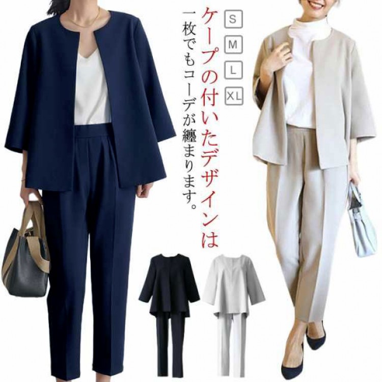 パンツスーツ レディース フォーマルス レディースファッション 人気 ベージュ上下セット ネイビー上下セット ブラック上下セット S M L XL
