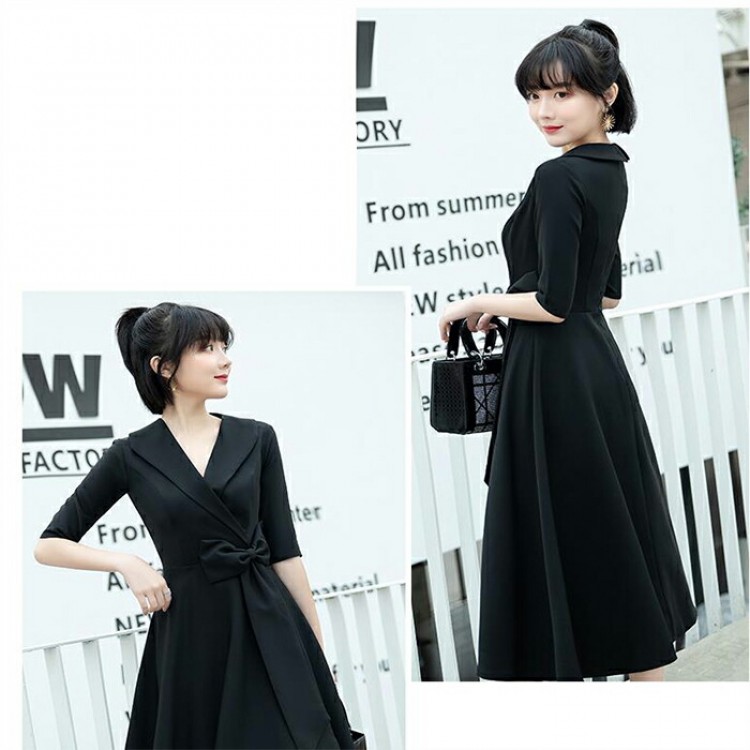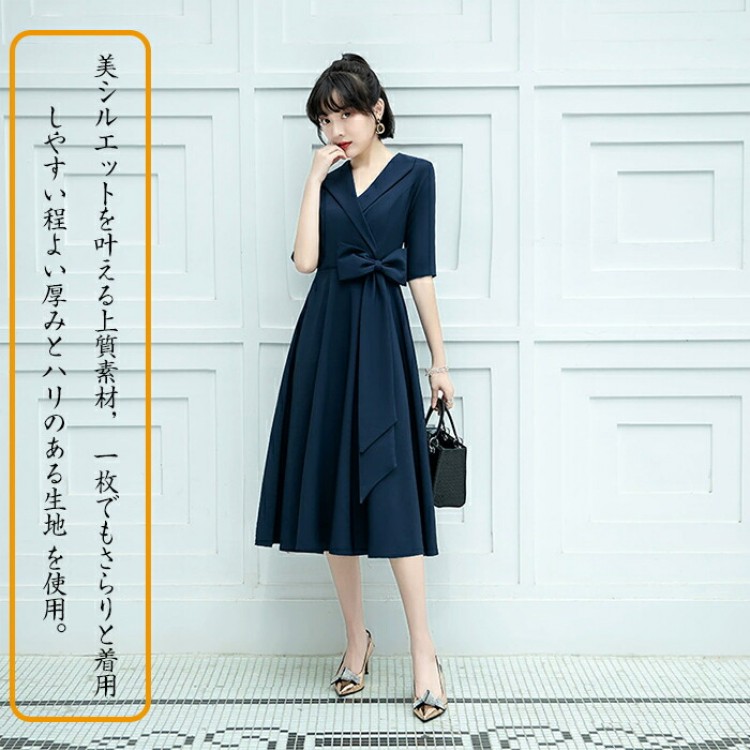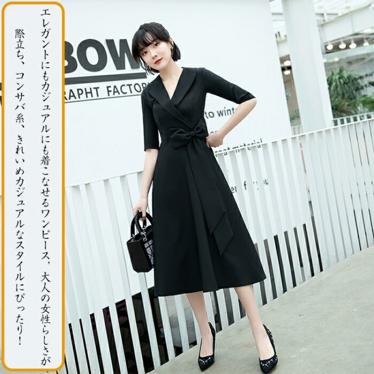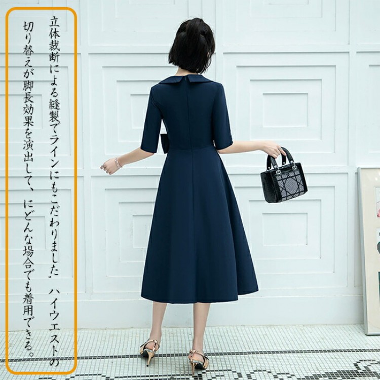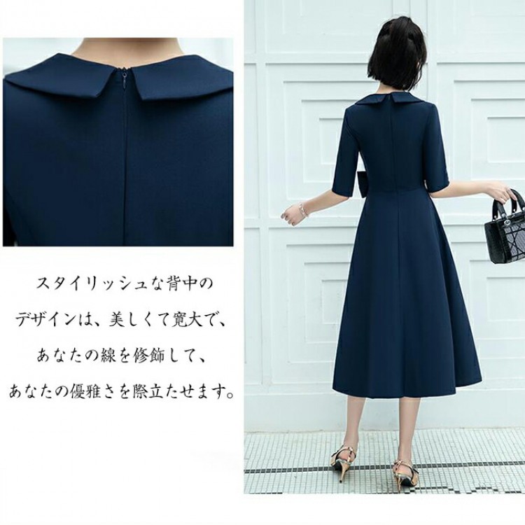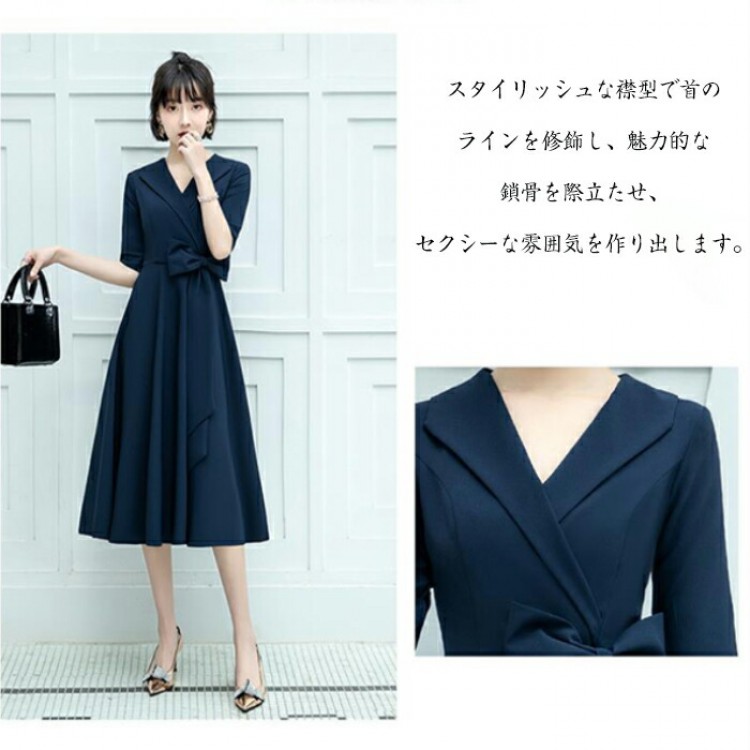 ワンピース レディース 中袖 Aライン 無地 膝下丈 細見え 着痩せ 体型カバー 夏 春秋 シンプル 女性 xS-3XL ロング エレガント ドレス
