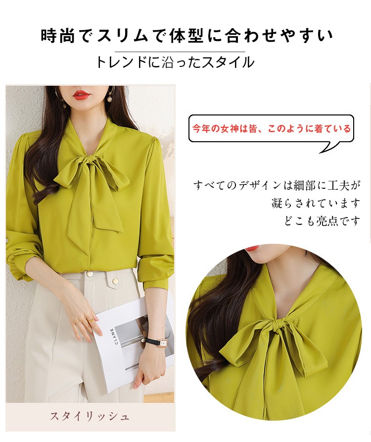 レディース ブラウス ボウタイ リボン レディースファッション 特集 ホワイト イエロー ブルー あんずいろ S M L XL XXL