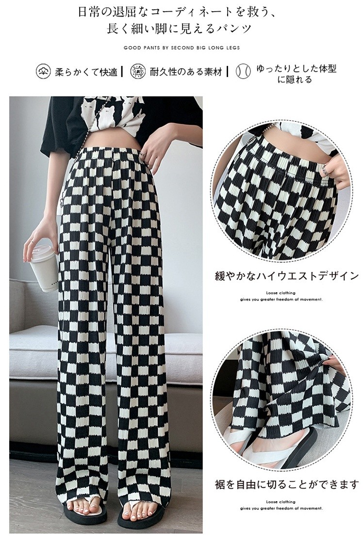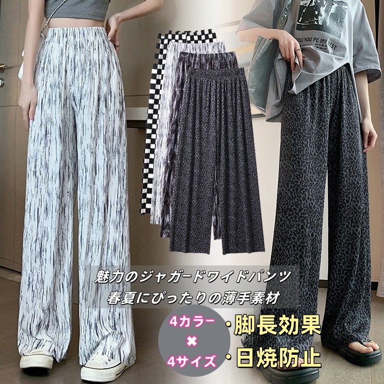 レディース ワイドパンツ 春 夏 日焼 レディースファッション 通販 チェック柄 レオパード柄 ホワイト ブラック S M XL XXL