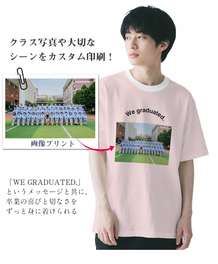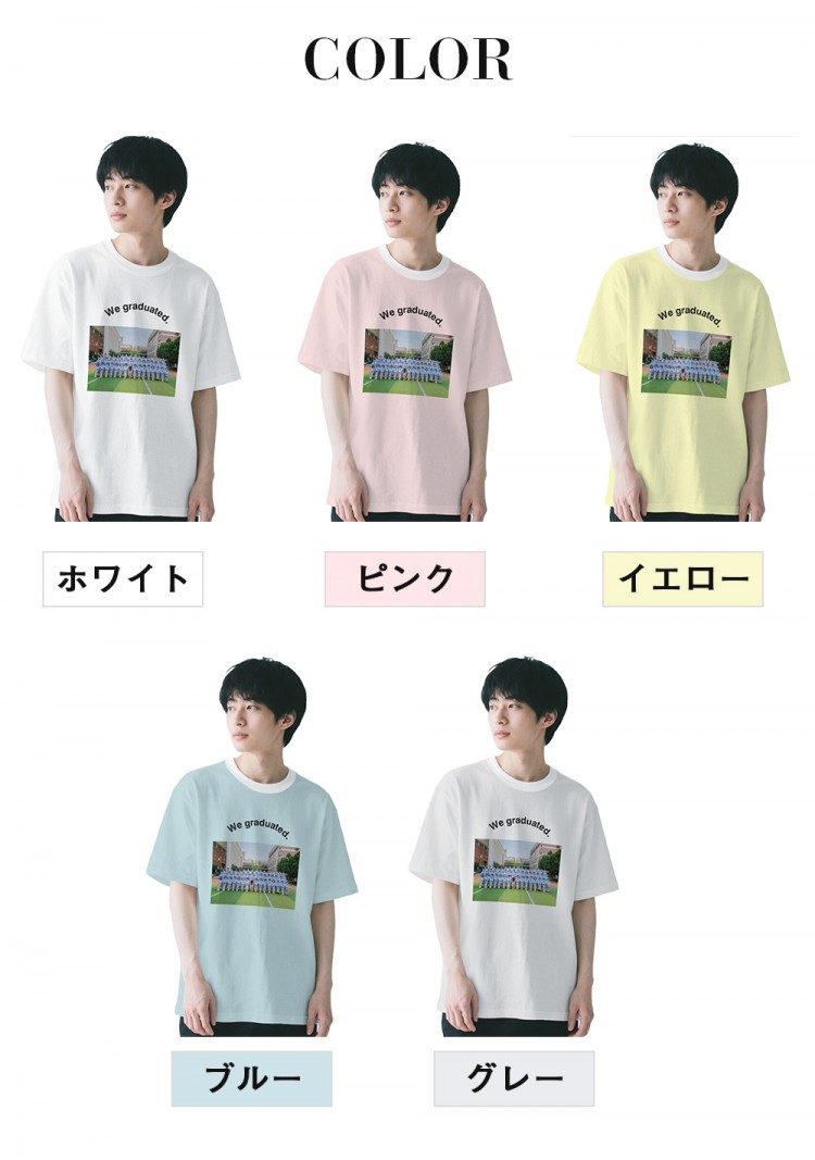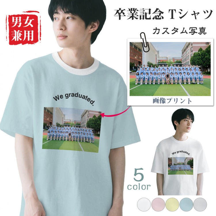 卒業記念 写真プリントTシャツ 男女兼 レディースファッション 通販 ホワイト ピンク イエロー ブルー グレー S M L XL 2XL 3XL