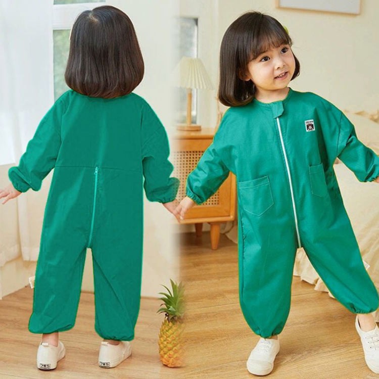 プレイウエア 長袖 お砂場着 子供 撥 キッズ ベビー マタニティ 早い者勝ち 無地ブルー 無地ピンク 無地イエロー 無地グリーン イエロークマ グリーンクマ ブルークマ ピンククマ 80 90 100 110 120