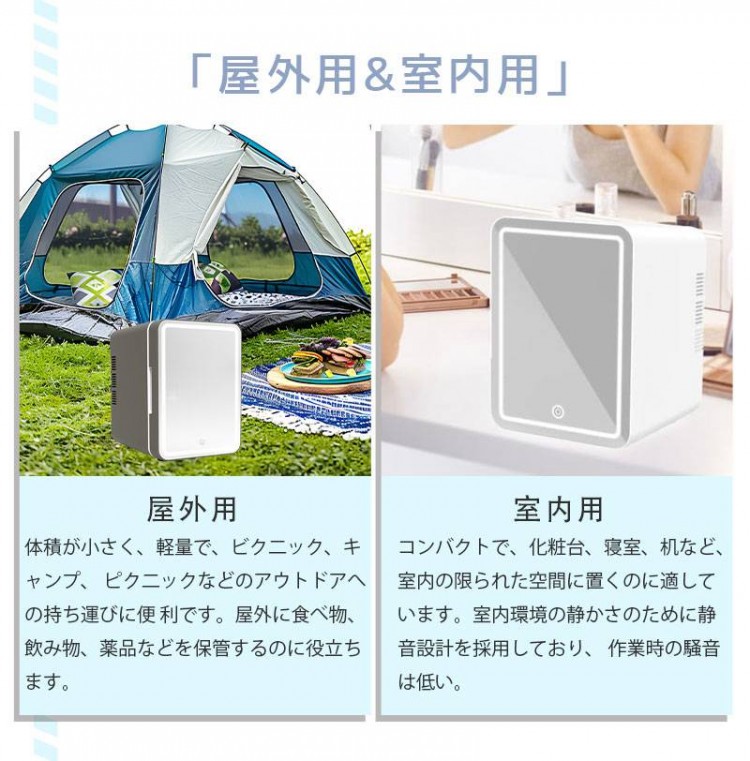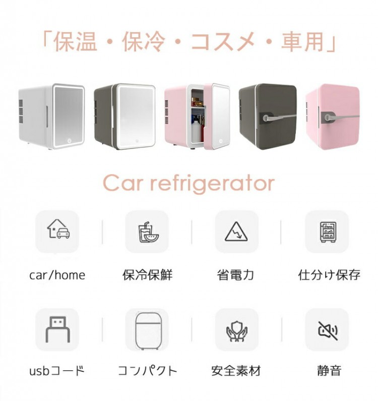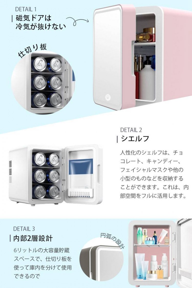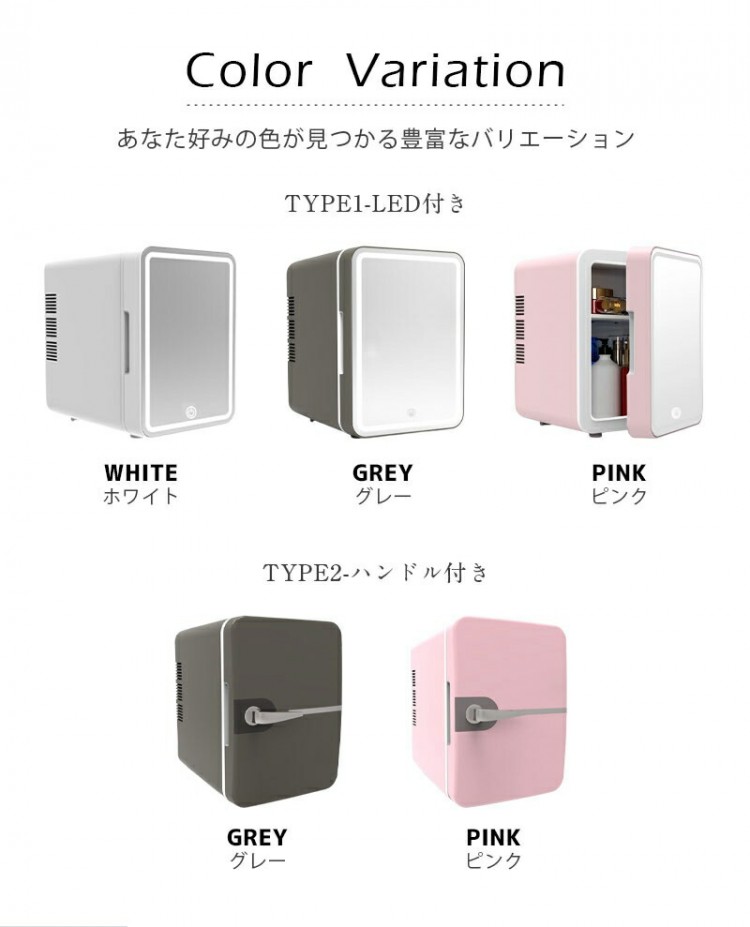 スキンケア冷蔵庫 ミニ冷蔵庫 6L 小 White Pink Grey type1-LED鏡付き type2-ハンドル付き