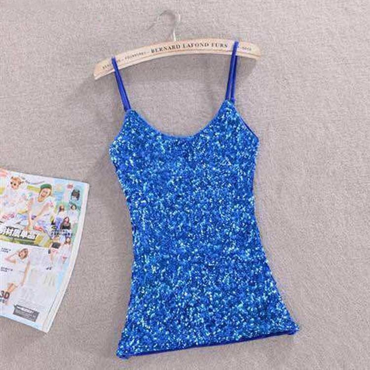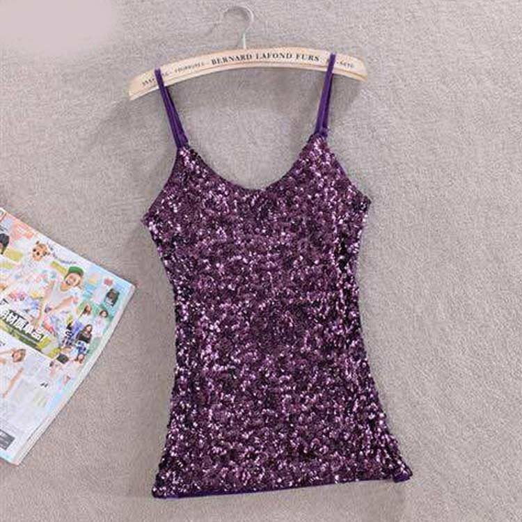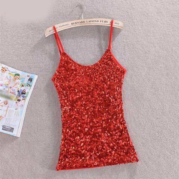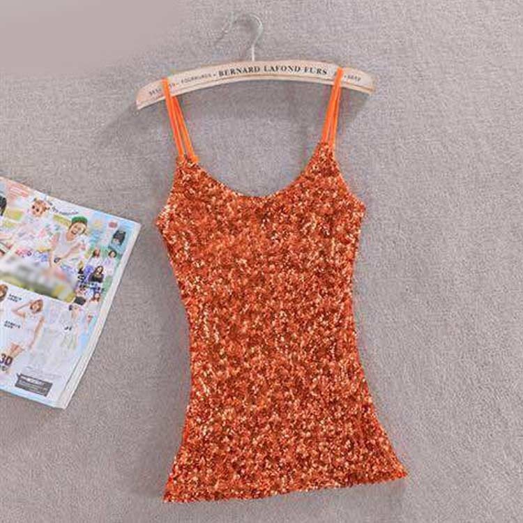 スパンコール衣装 仮装 衣装 Vネック トップス タンクトップ 豊富 ホワイト パープル グリーン ブラック ゴールド レッド オレンジ ブルー ライトブルー シルバー バラ