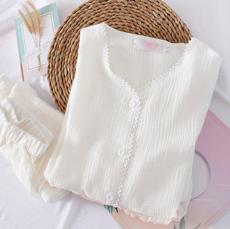 二重ガーゼパジャマ 上下セット 棉ルー テニス 振動止め 早い者勝ち M L XL ピンク グリーン ホワイト イエロー