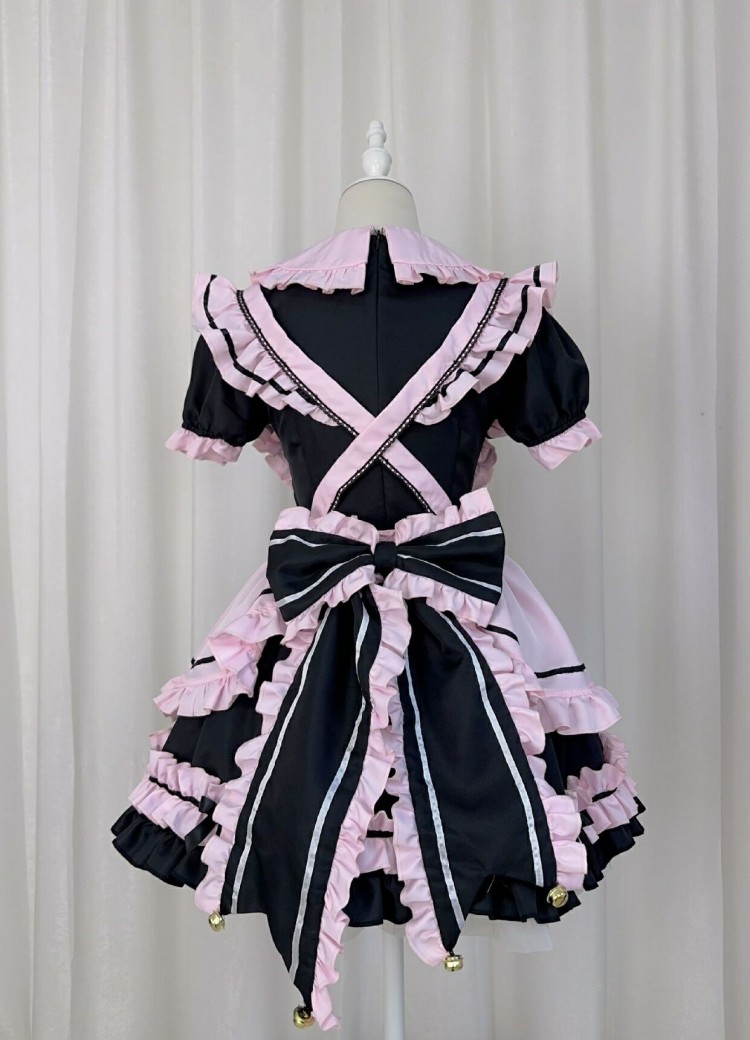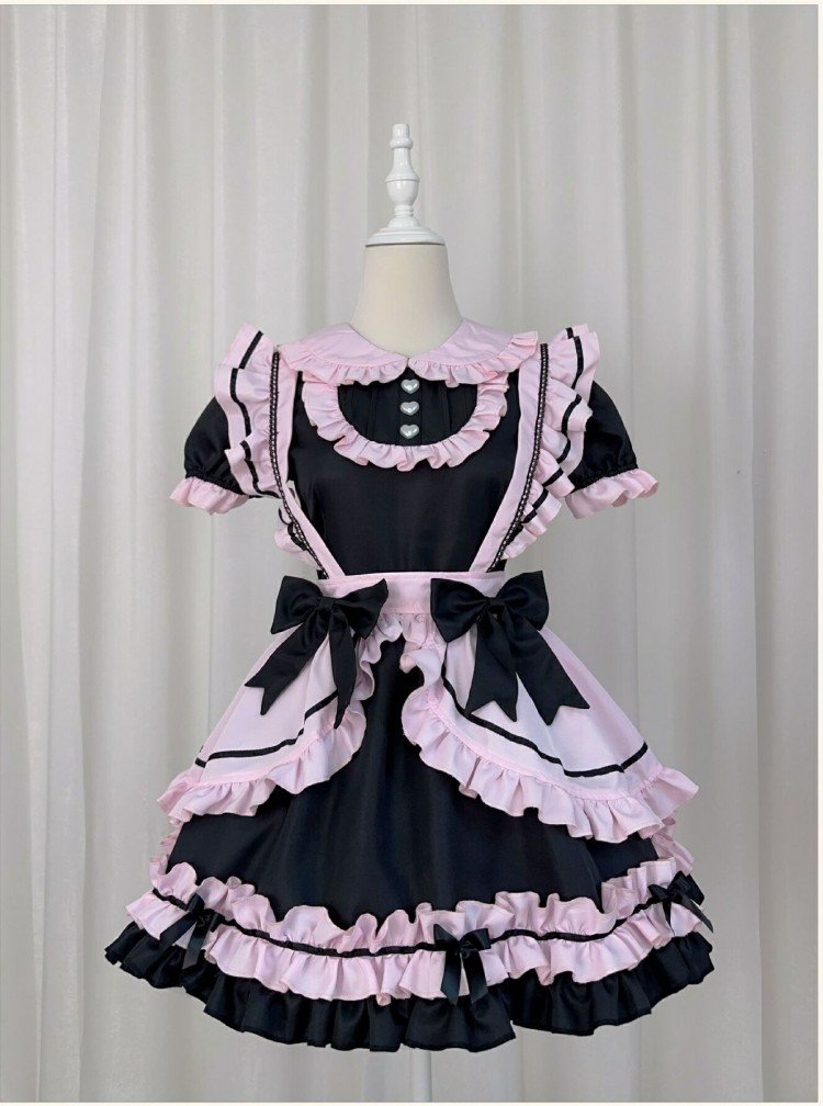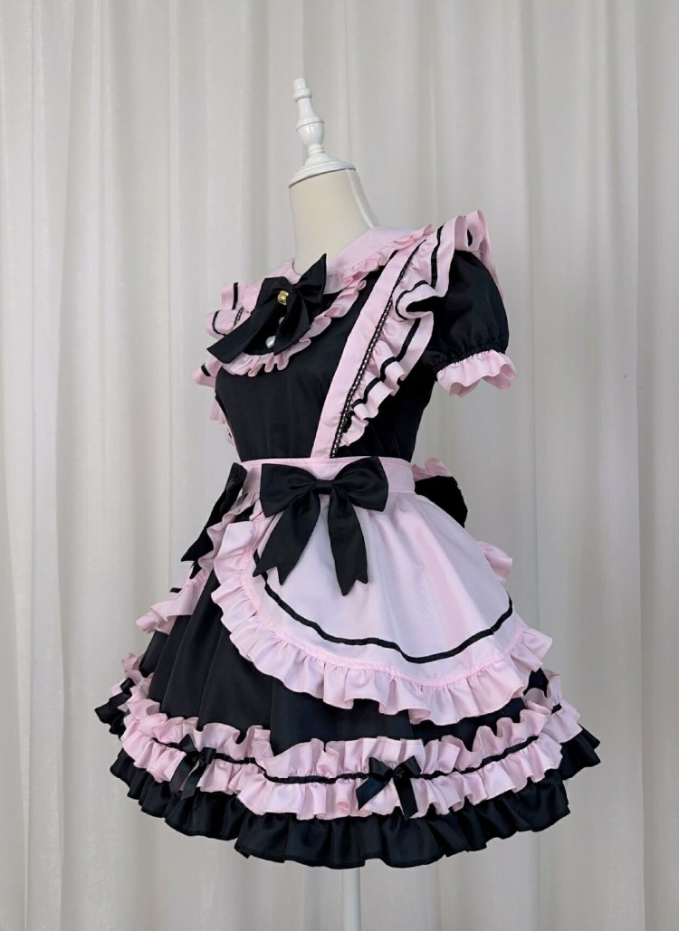 メイド服 ブラックxピンク ロリータワ コスプレ 変装 仮装 ワンピース 通販 S M L XL