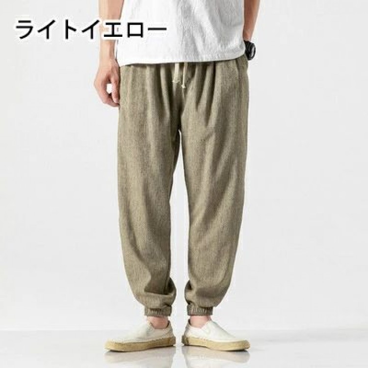 リネン パンツ 麻 メンズ リネンパン グレー ブラック クリーム ライトブルー ライトイエロー ネイビー グリーン M L XL 2XL 3XL 4XL 5XL