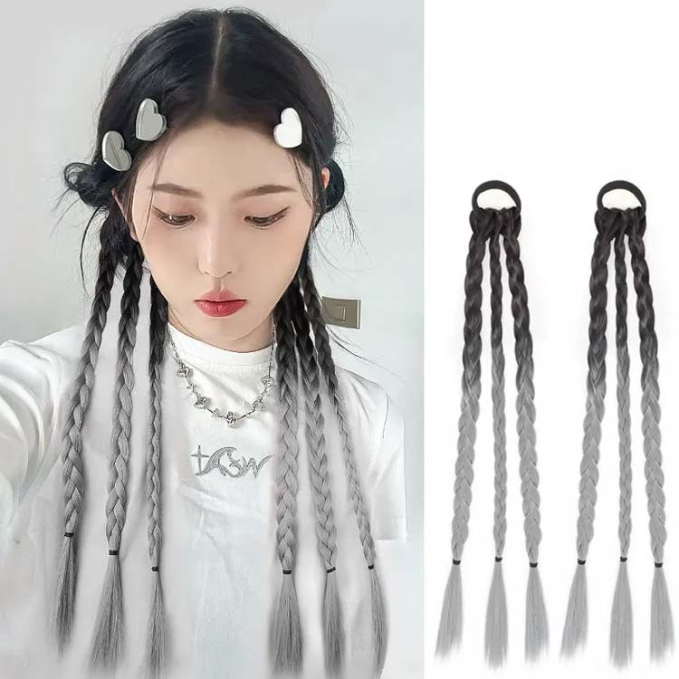 キッズ エクステ 三つ編み エクステン ウィッグ つけ毛 エクステンション 人気 黒茶色×ピンク 黒茶色×ライトパープル 黒茶色×グレー 黒茶色×ブルー ブラック 黒茶色 ダークブラウン ライトブラウン