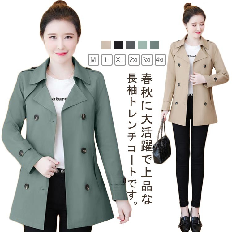 春コート レディース トレンチコート レディースファッション 豊富な品揃え ダークグリーン ライトグリーン ダークグレー ブラック ベージュ M L XL 2XL 3XL 4XL