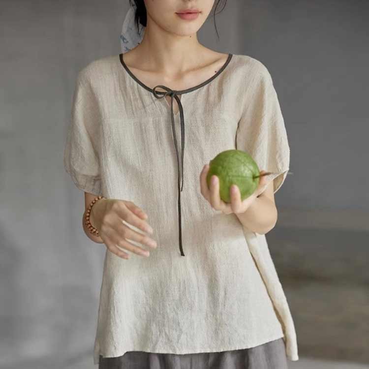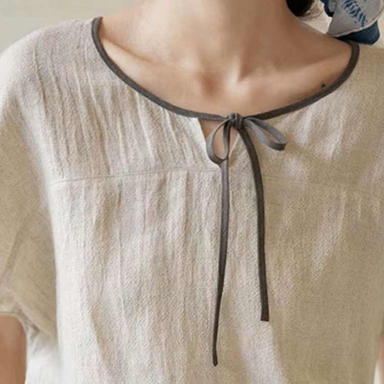 シアースリーブ ドッキングシャツ ボウタイシャツブラウス