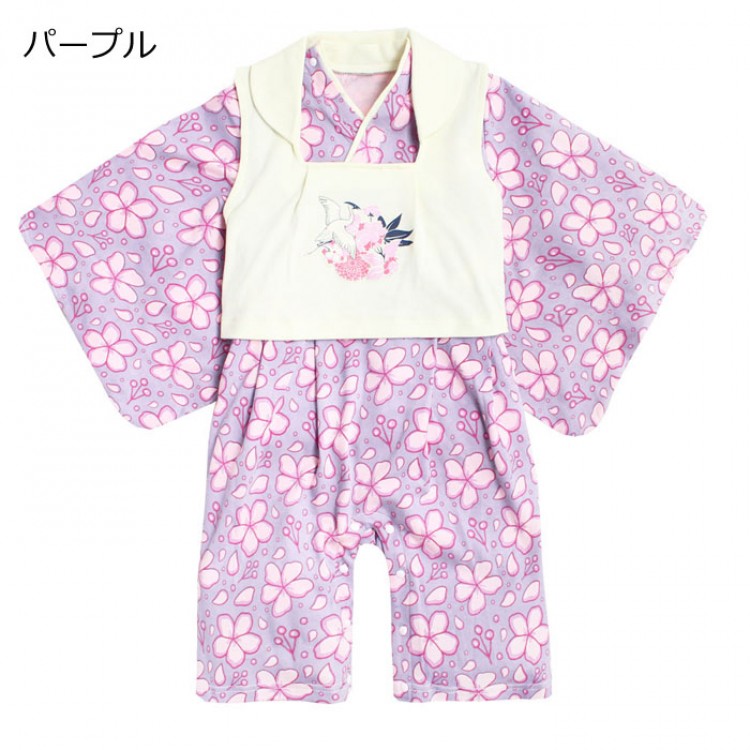 袴ロンパース 女の子 子供 ベビー服 ベビー ベビー服 ファッション カバーオール ロンパース 人気 ピンク パープル 70cm 80cm 90cm