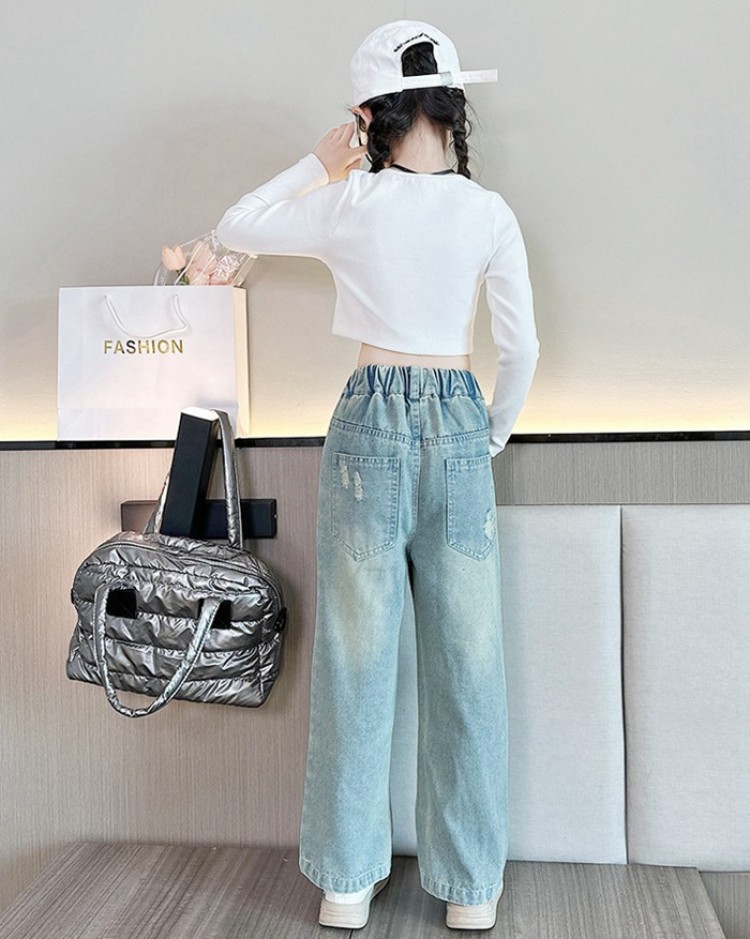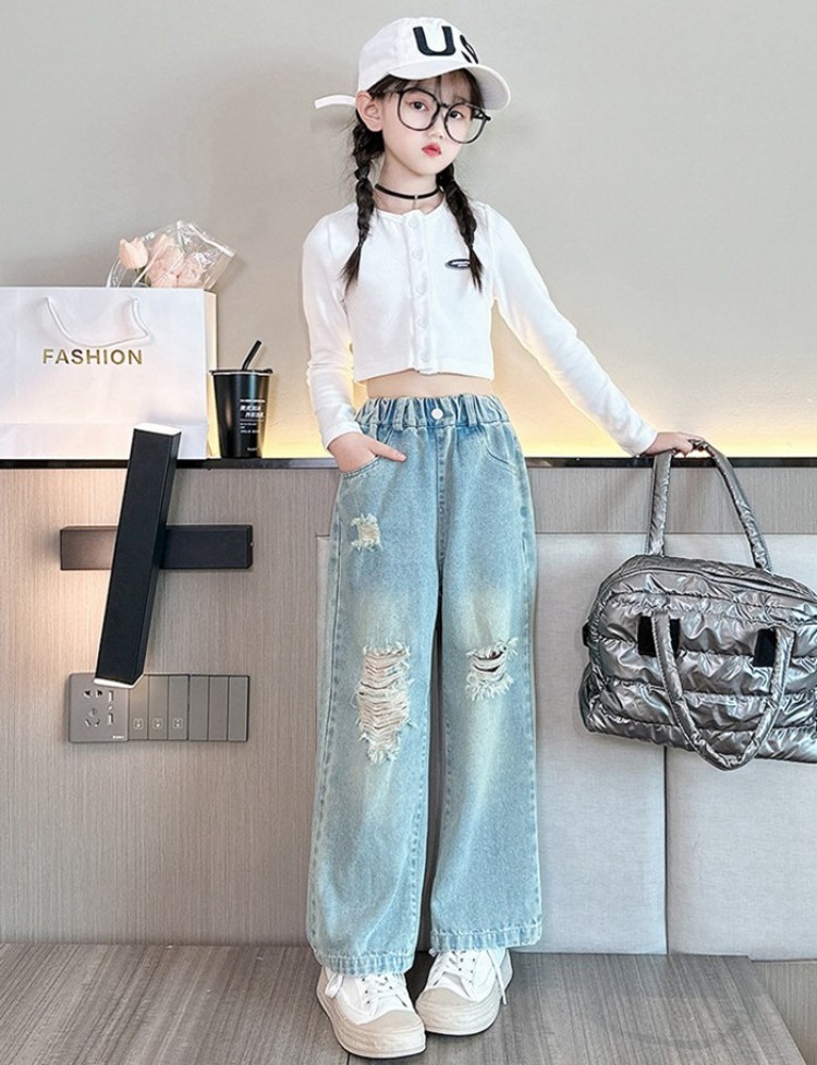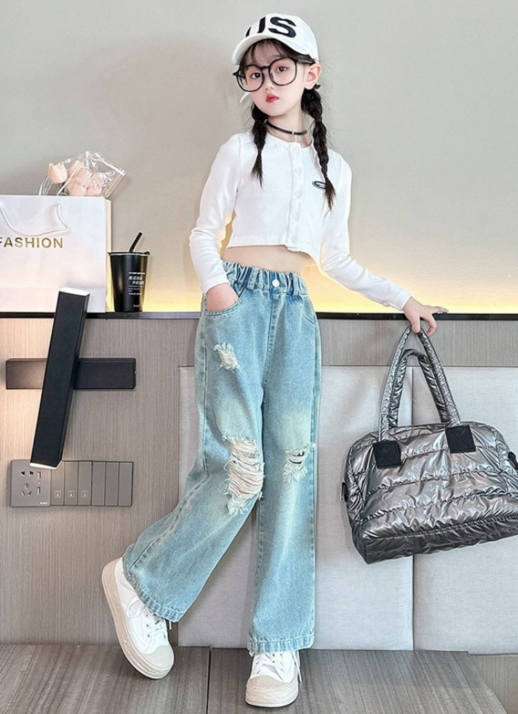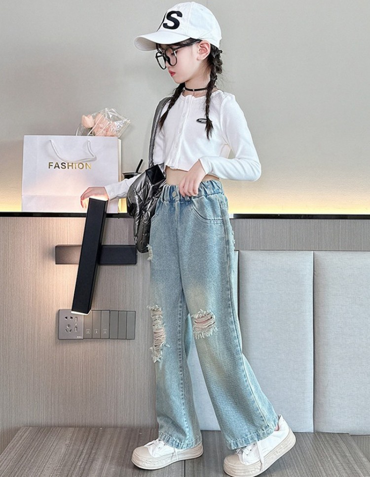 送料無料 人気商品 春 夏 秋 新作 子供服 おしゃれ 女の子 デニム ダメージ ジーンズ キッズ ダンス衣装 ジュニア カジュアルパンツ 翌日発送