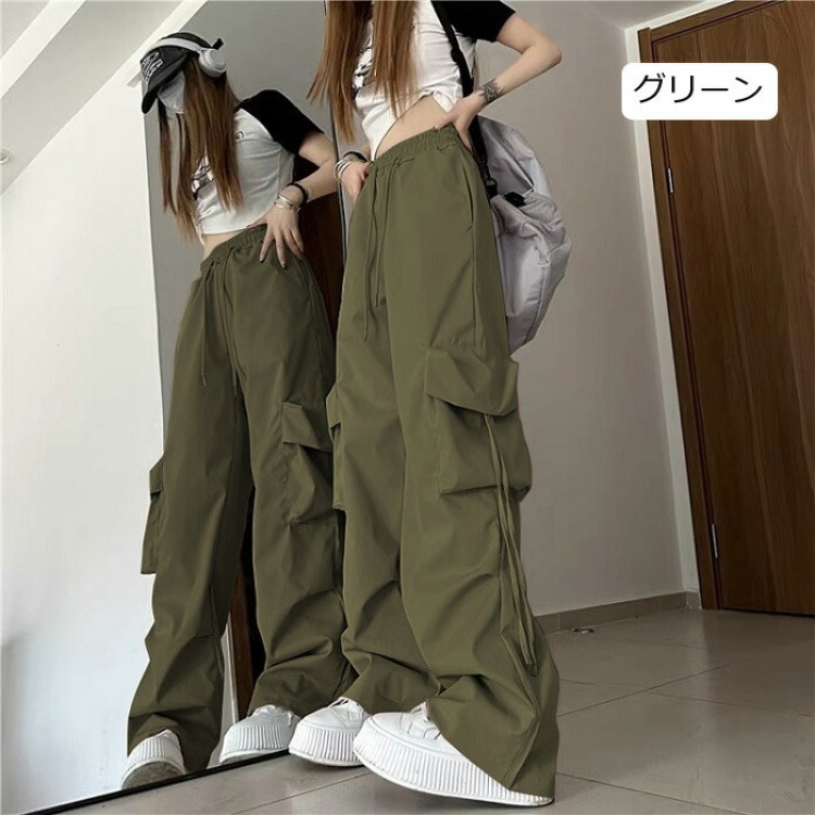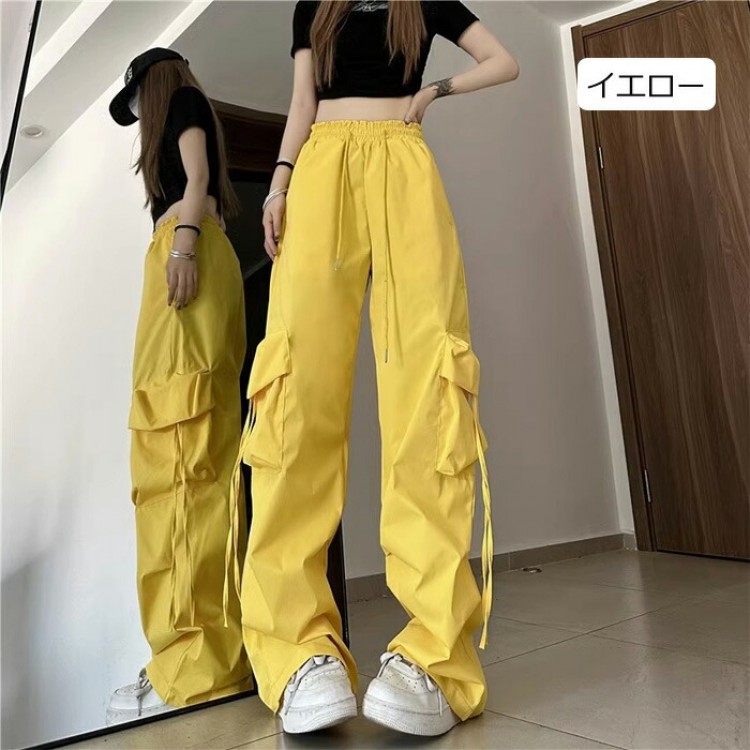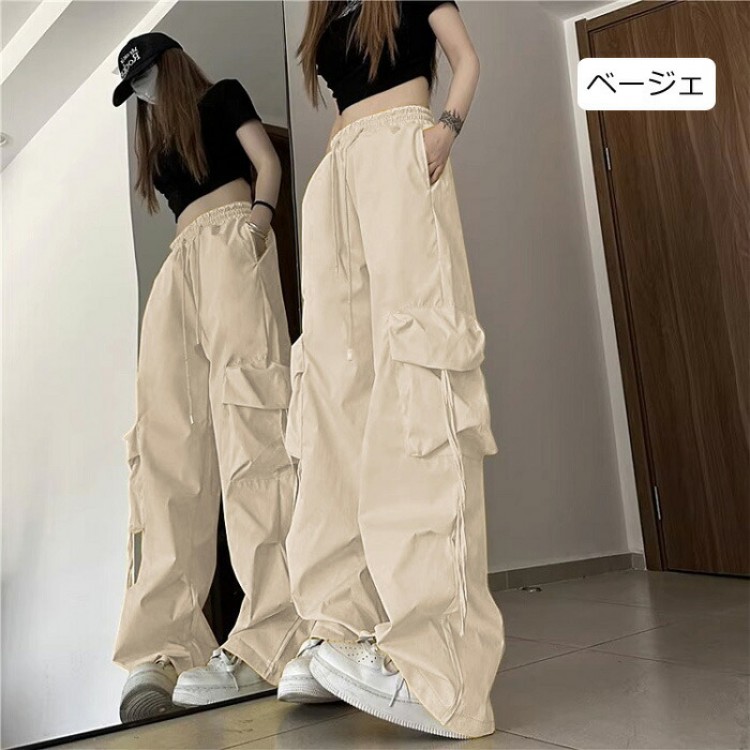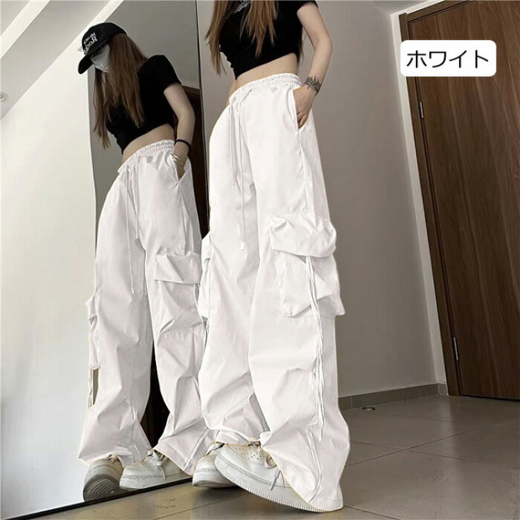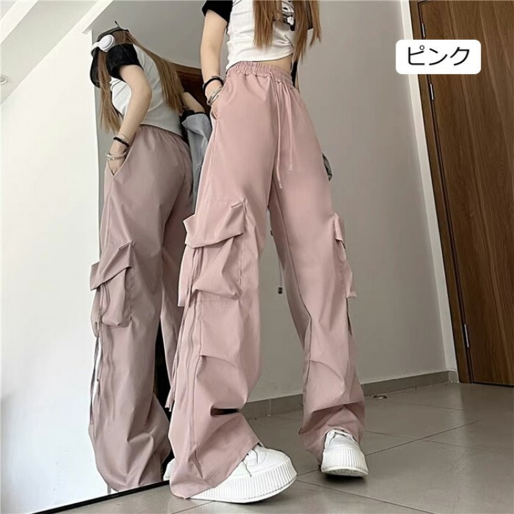 カーゴパンツ レディース ワイドパンツ ブラック ベージェ ピンク グリーン ホワイト グレー ブルー イエロー S M L XL XXL