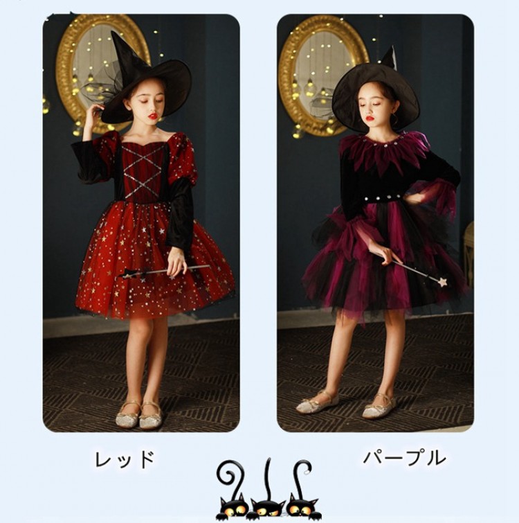 女の子 ハロウィン コスプレ 衣装 ワ キッズ ベビー マタニティ 豊富な品揃え パープル レッド 100(身長約95cm) 110(身長約105cm) 120(身長約115cm) 130(身長約125cm) 140(身長約135cm) 150(身長約145cm) 160(身長約155cm)