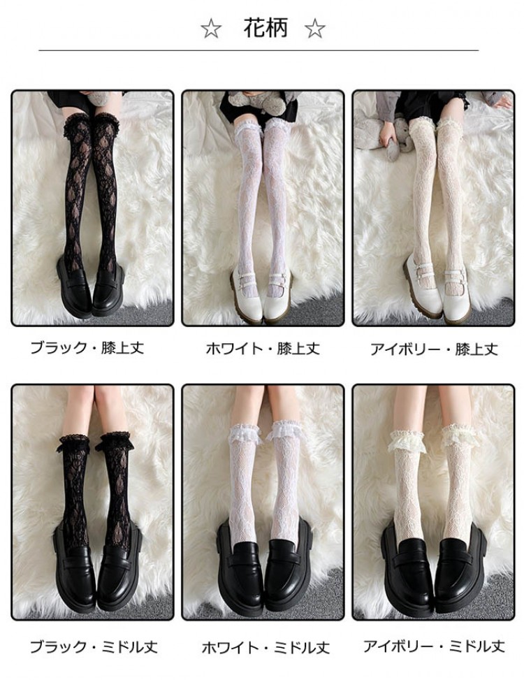 ハイソックス 靴下 レディース ロリー レディース 靴下 レッグウェア 靴下 早い者勝ち ホワイト ブラック アイボリー ミドル丈 ロング丈