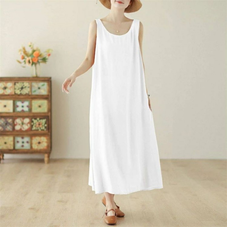 カジュアル 高身長 マキシ丈ワンピース ホワイト ブラック カーキ S M L XL 2XL