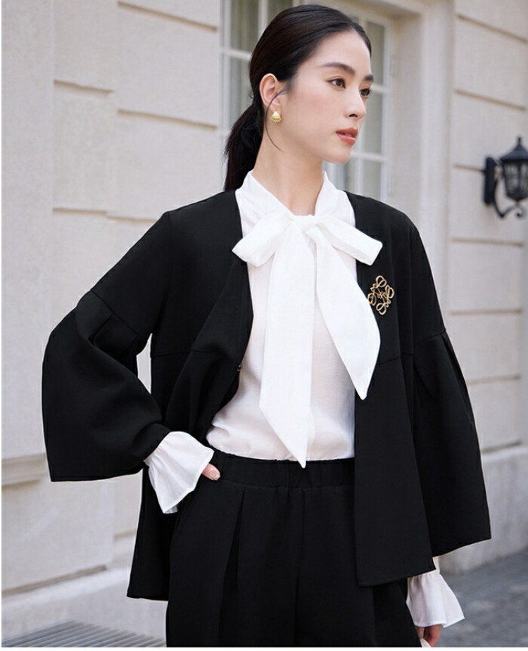 シアースリーブ ドッキングシャツ ボウタイシャツブラウス