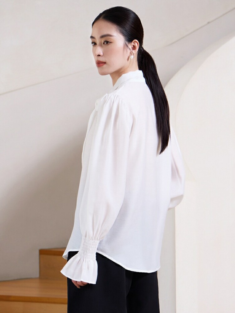 シフォンブラウス シアーブラウス ボリューム袖