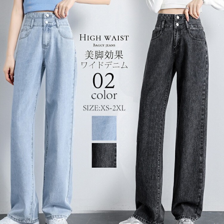 デニム ワイドパンツ レディース ロン ブルー九分丈パンツ ブルー長い丈パンツ ブラック九分丈パンツ ブラック長い丈パンツ XS S M L XL XXL