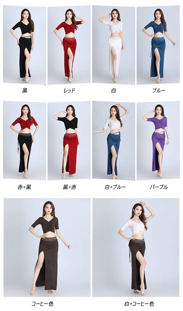 ベリーダンス レッスン着 練習着 衣装 体操 ダンス ベリーダンス 衣装セット 人気 S M L XL XXL XXXL 黒 レッド 白 ブルー 赤+黒 黒+赤 白+ブルー パープル コーヒー色 白+コーヒー色