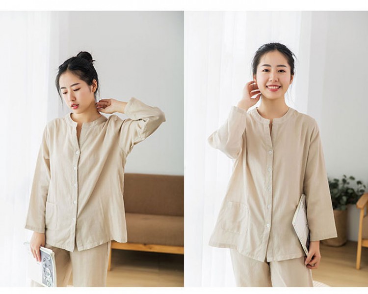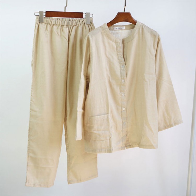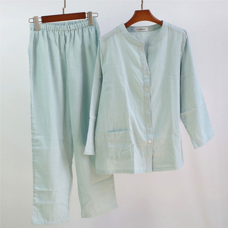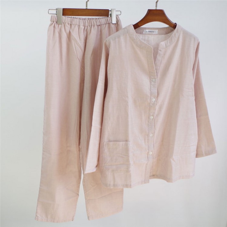 パジャマ 2重ガーゼ 綿100% 前開 テニス 振動止め 早い者勝ち スモークピンク ベージュ ライトブルー S M L XL