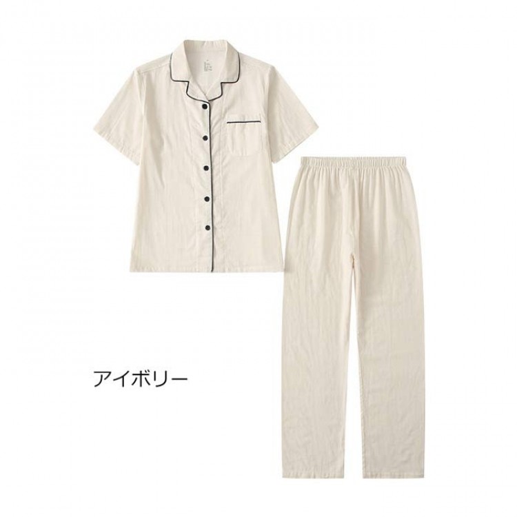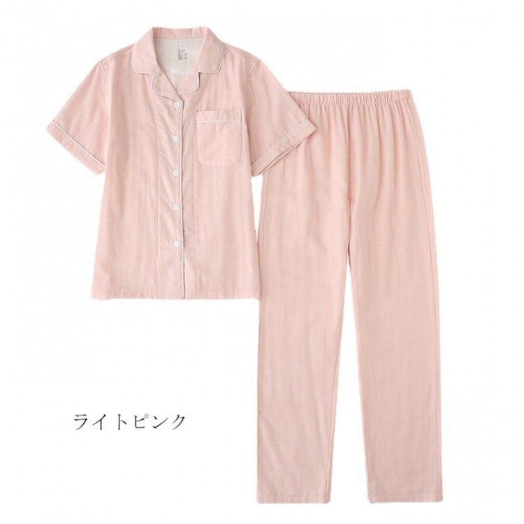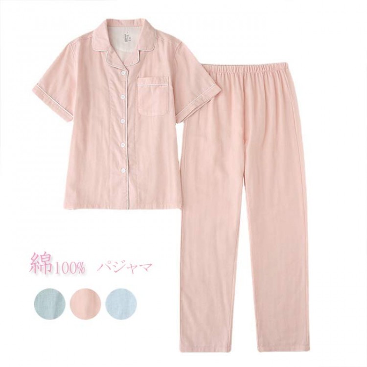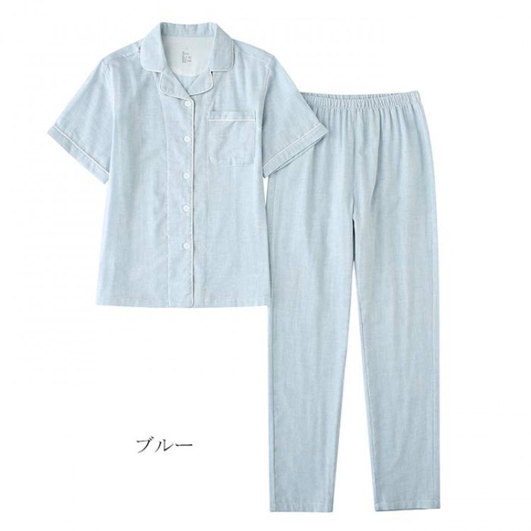 ダブルガーゼ パジャマ レディース 半 テニス 振動止め 早い者勝ち ライトピンク ライトグリーン ブルー アイボリー M L XL