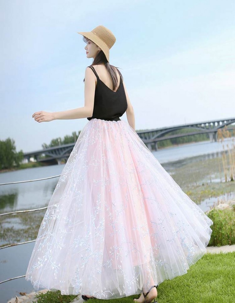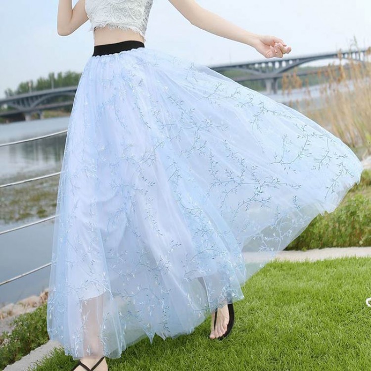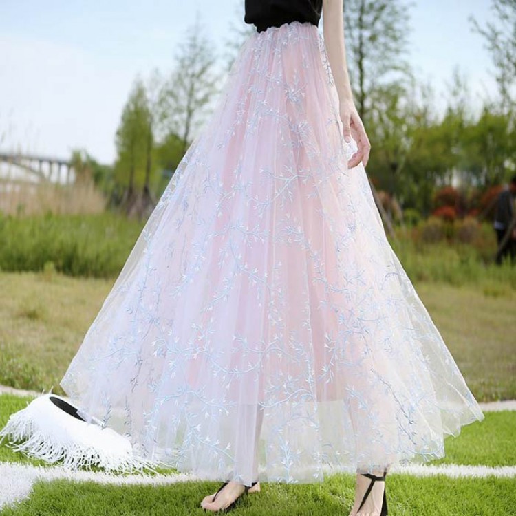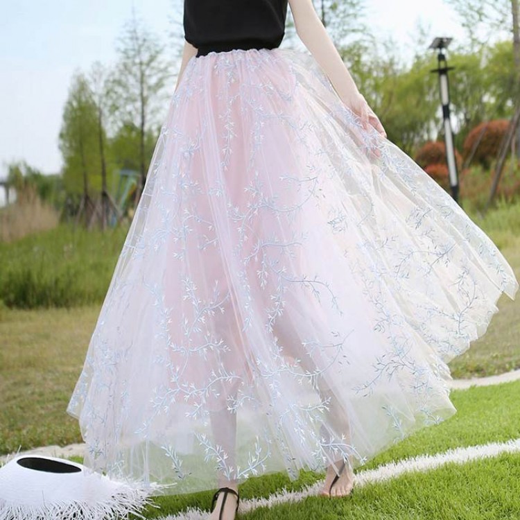 刺繍 チュールスカート ロングスカート ボトムス スカート 人気 80cm(身長150-159cm) 90cm(身長160-165cm) 100cm(身長165-172cm) ホワイト ブルー 杏色 ピンク