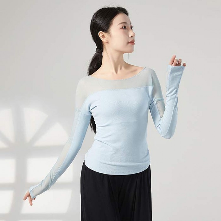 ダンス衣装 トップス バレエ 大人 長 S M L XL ブラック 杏色 ブルー グリーン グレー