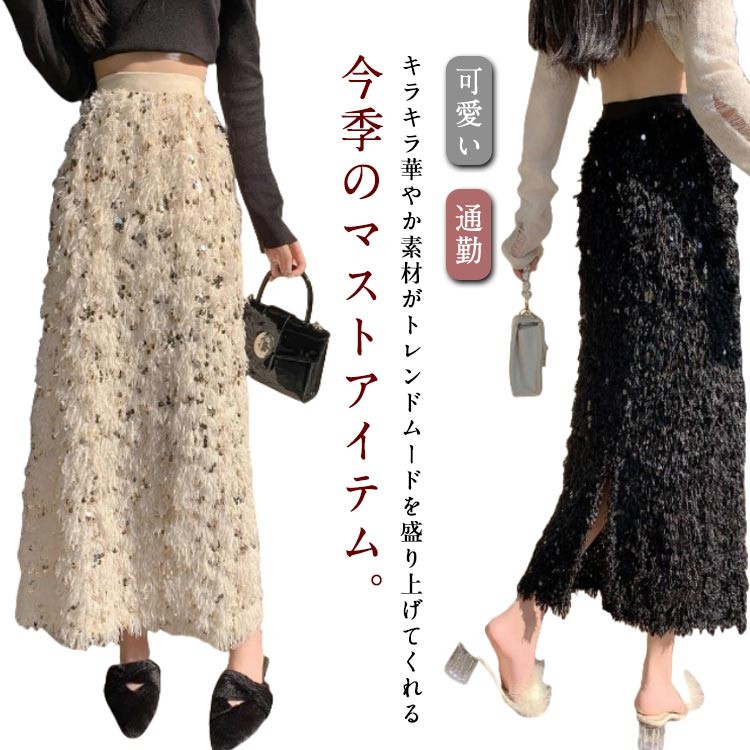 スカート レディース フリンジスカート レディースファッション 通販 ベージュ ブラック S M L XL
