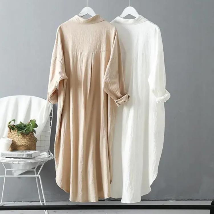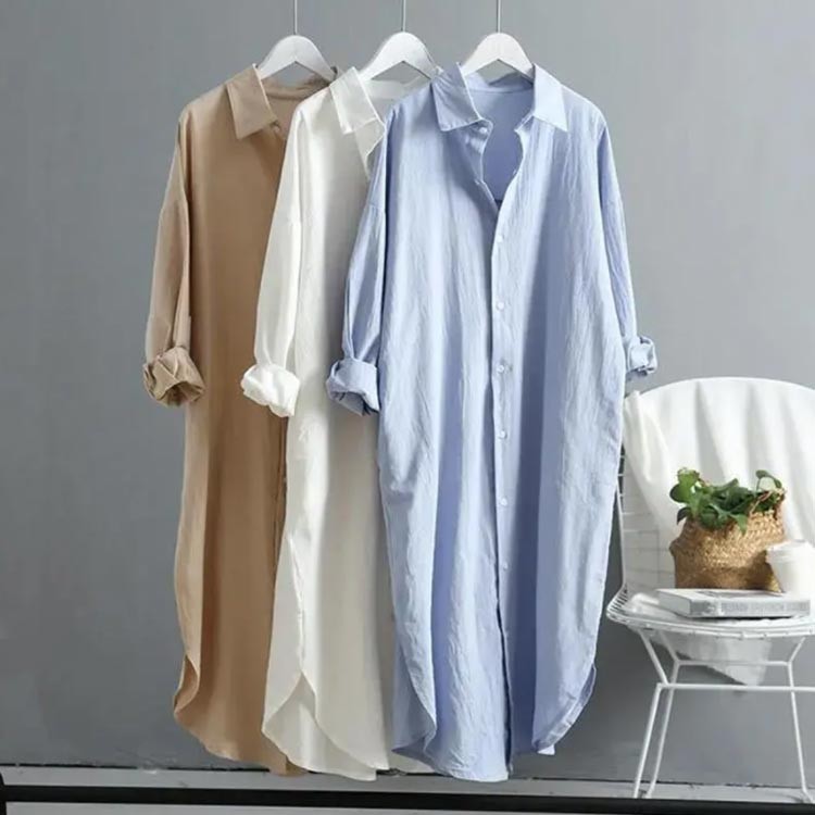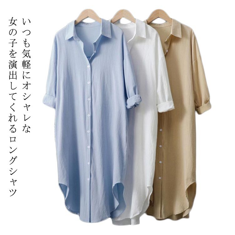 ゆったり ロングシャツ レディース 長 レディースファッション 続々登場 ホワイト ブルー ベージュ S M L XL 2XL