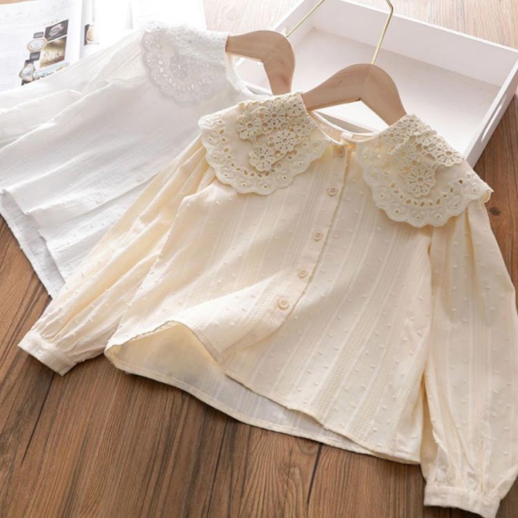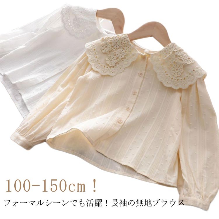 女の子 レース ブラウス 長袖 トップ キッズ ベビー マタニティ 新作 アプリコット ホワイト 100 110 120 130 140 150